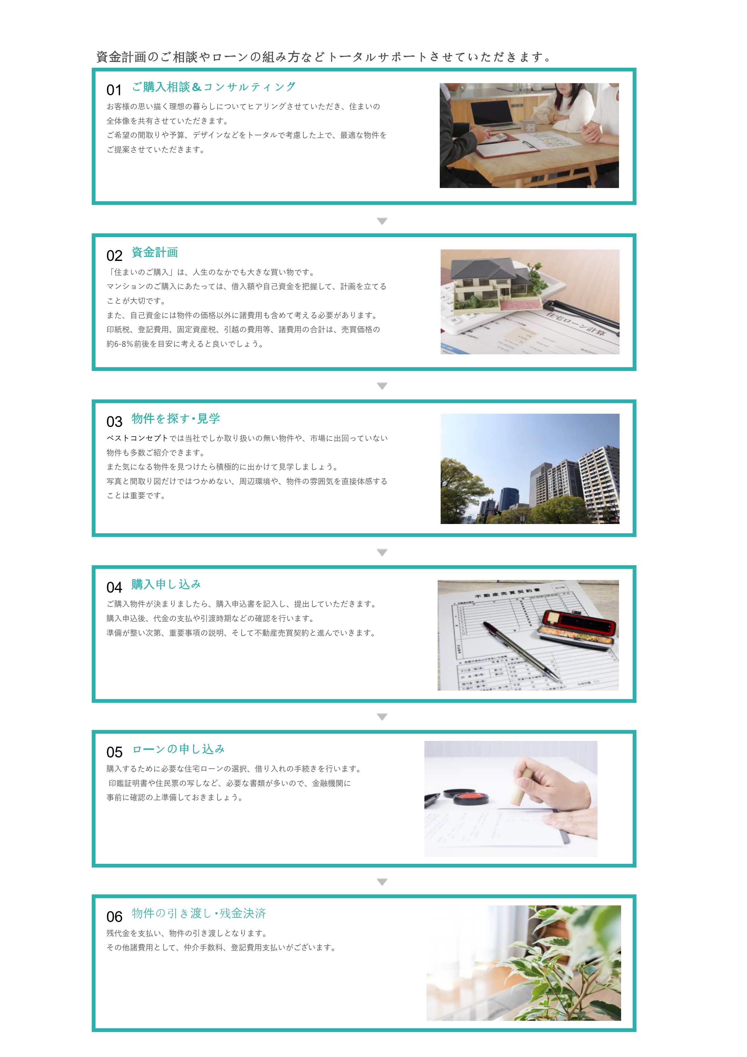 不動産の紹介はもちろん、ローンの組み方、保険などご購入までのフローを一貫してサポートさせていただいております。